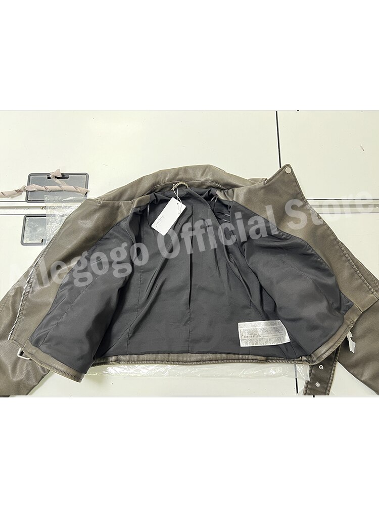 Ailegogo Women Vintage Loose Pu Faux Leather Short Jacket with Belt Streetwear Female Zipper Retro Moto Biker Coat Outwear Tops